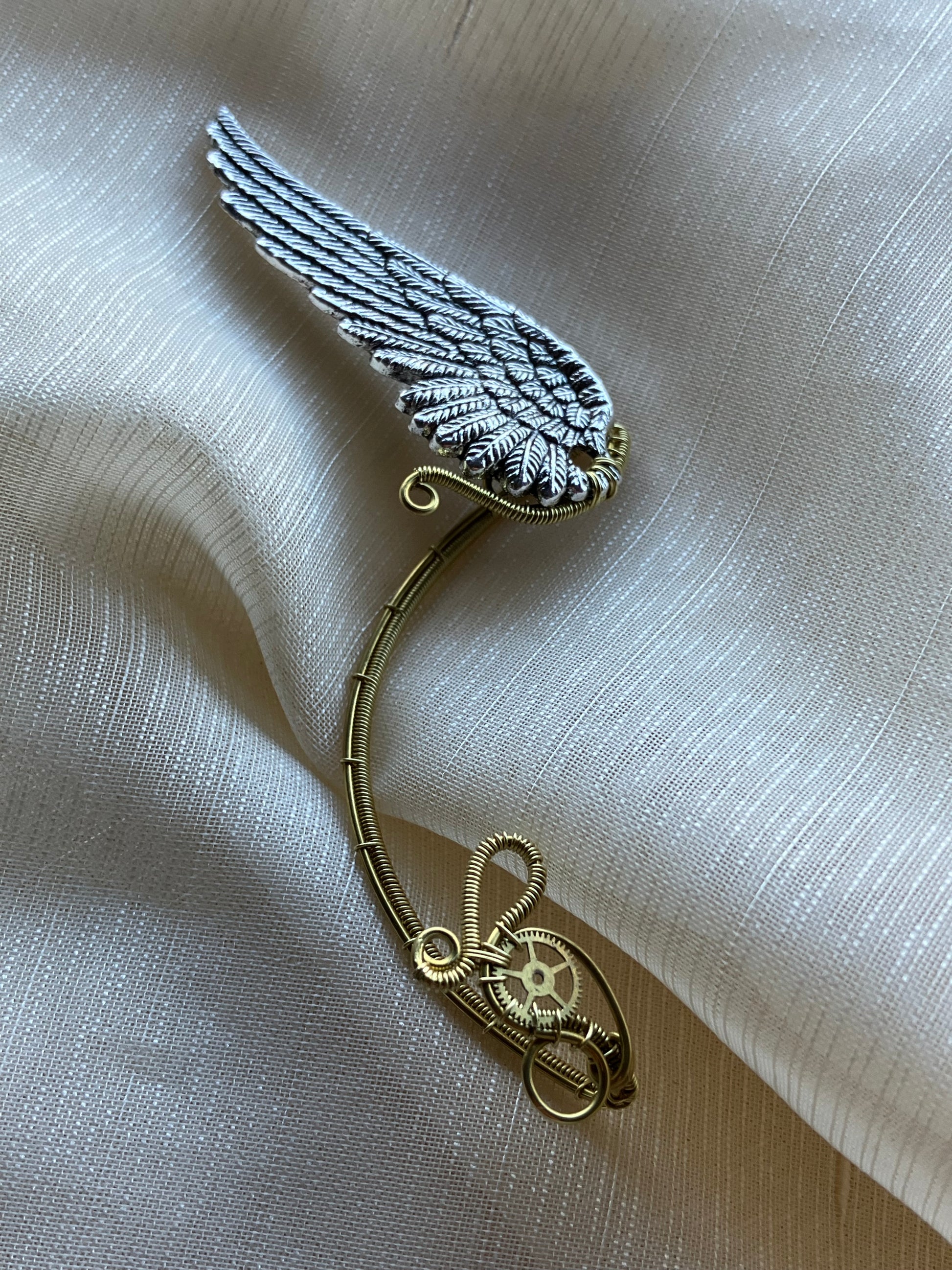 Sárgaréz fülékszer ezüstözött angyalszárnnyal.