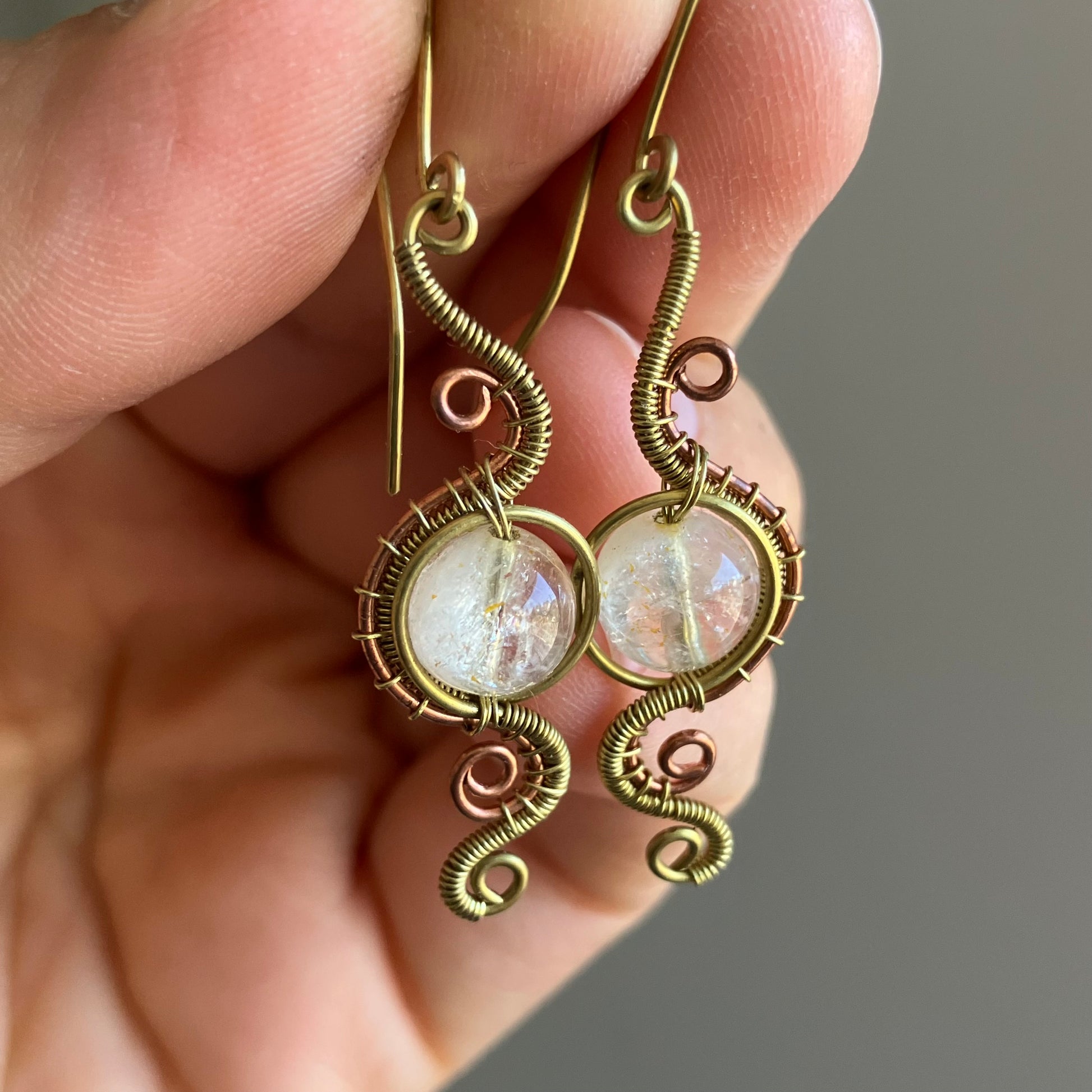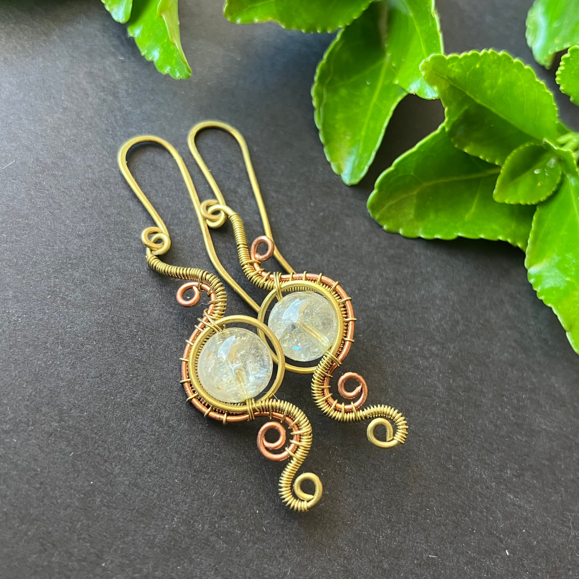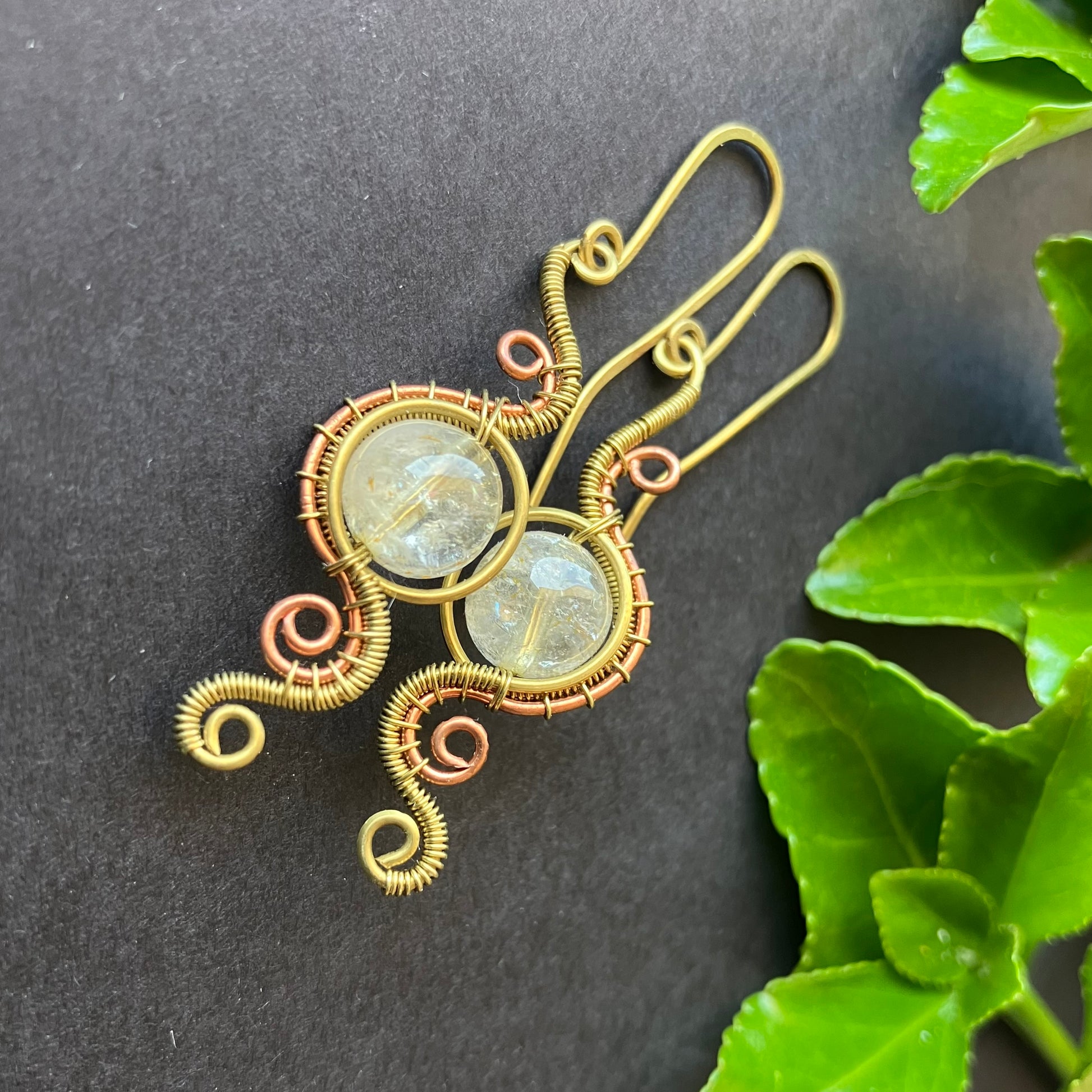 Brass copper citrin earrings