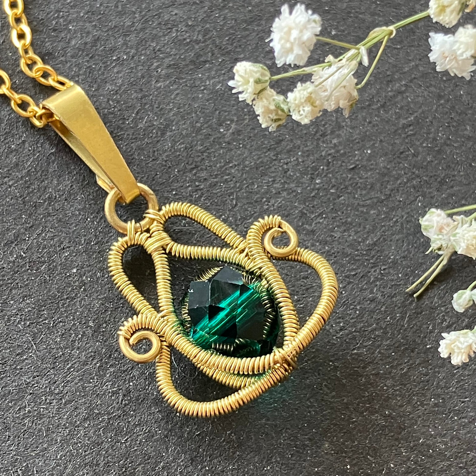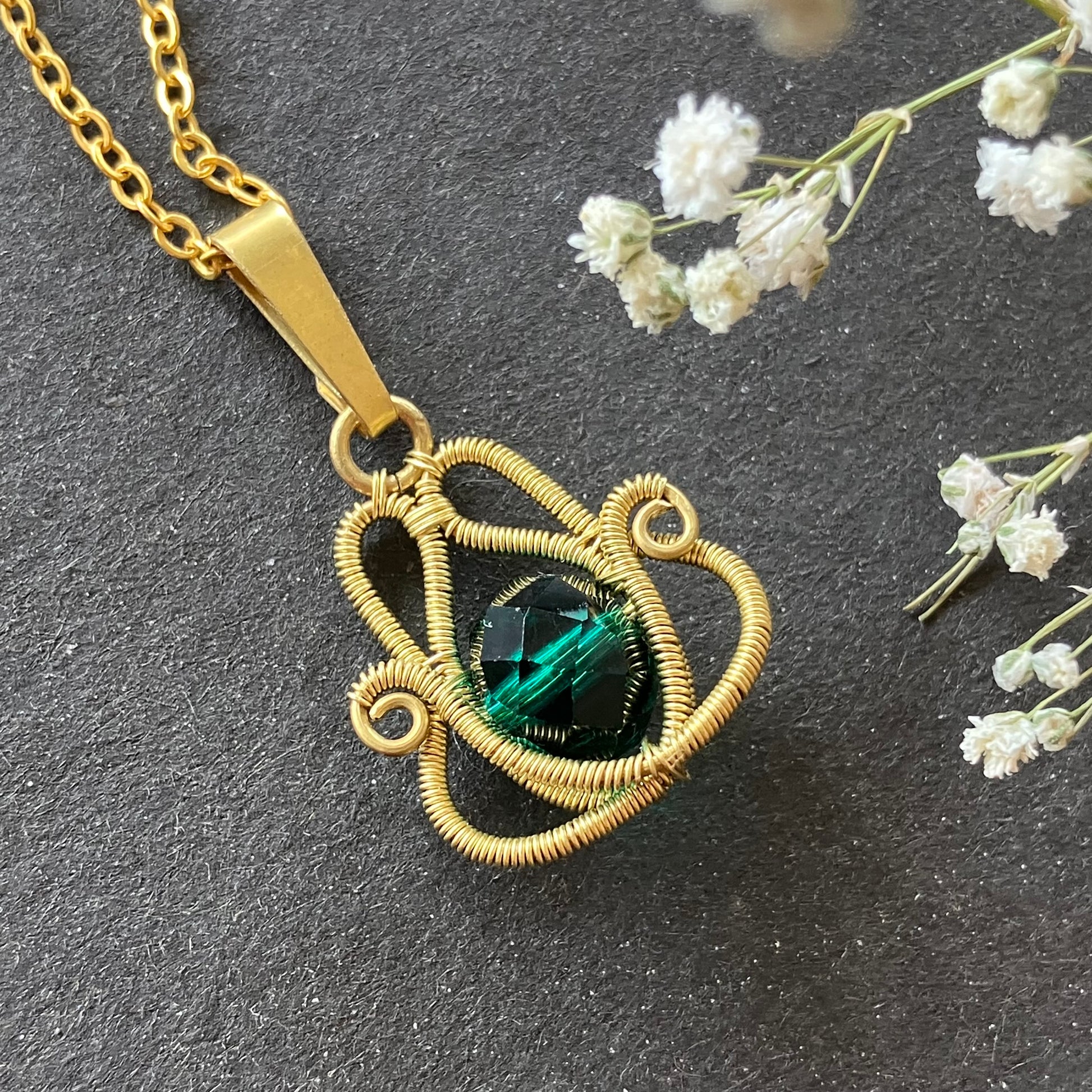 Brass green necklace