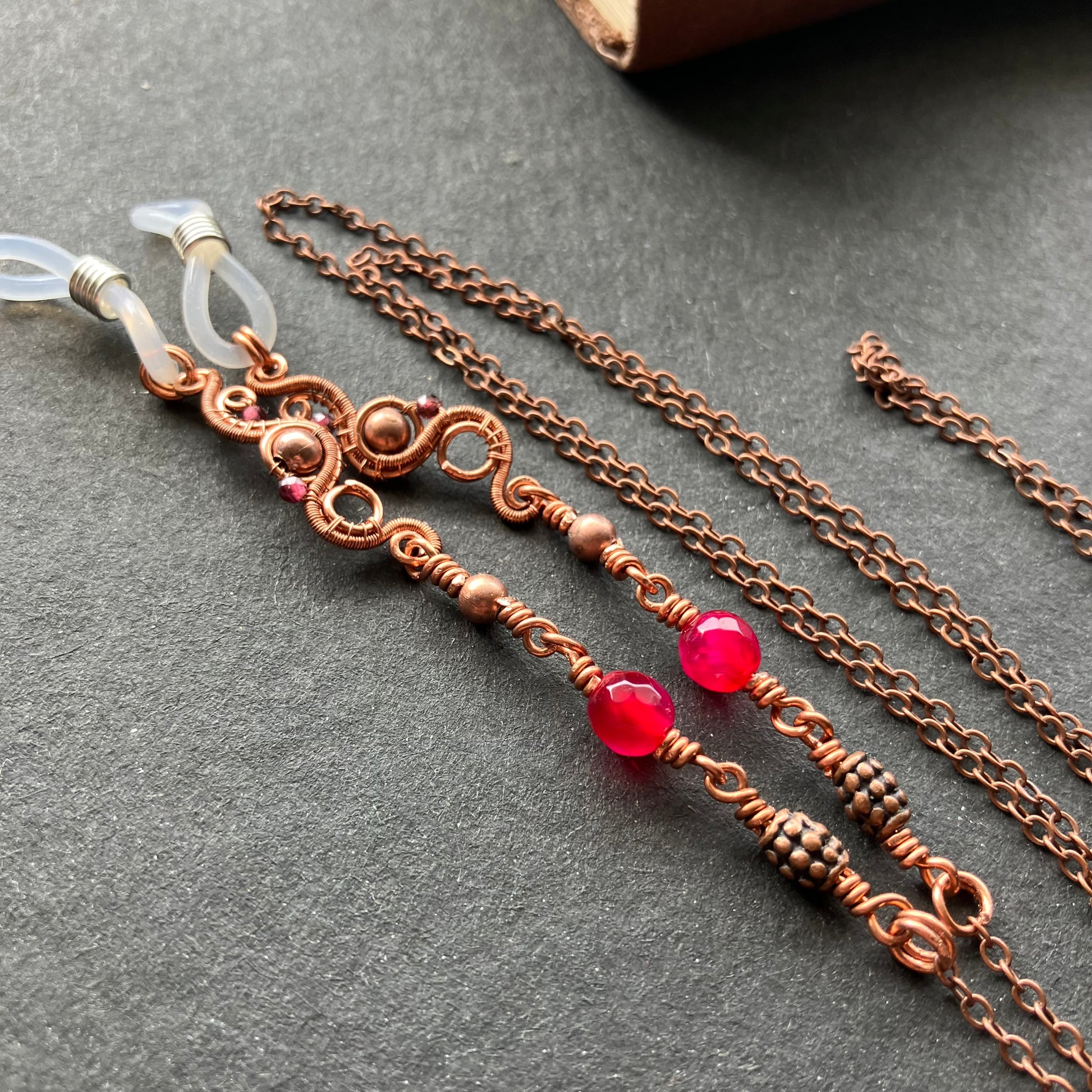 Garnet and jade copper glasses chain