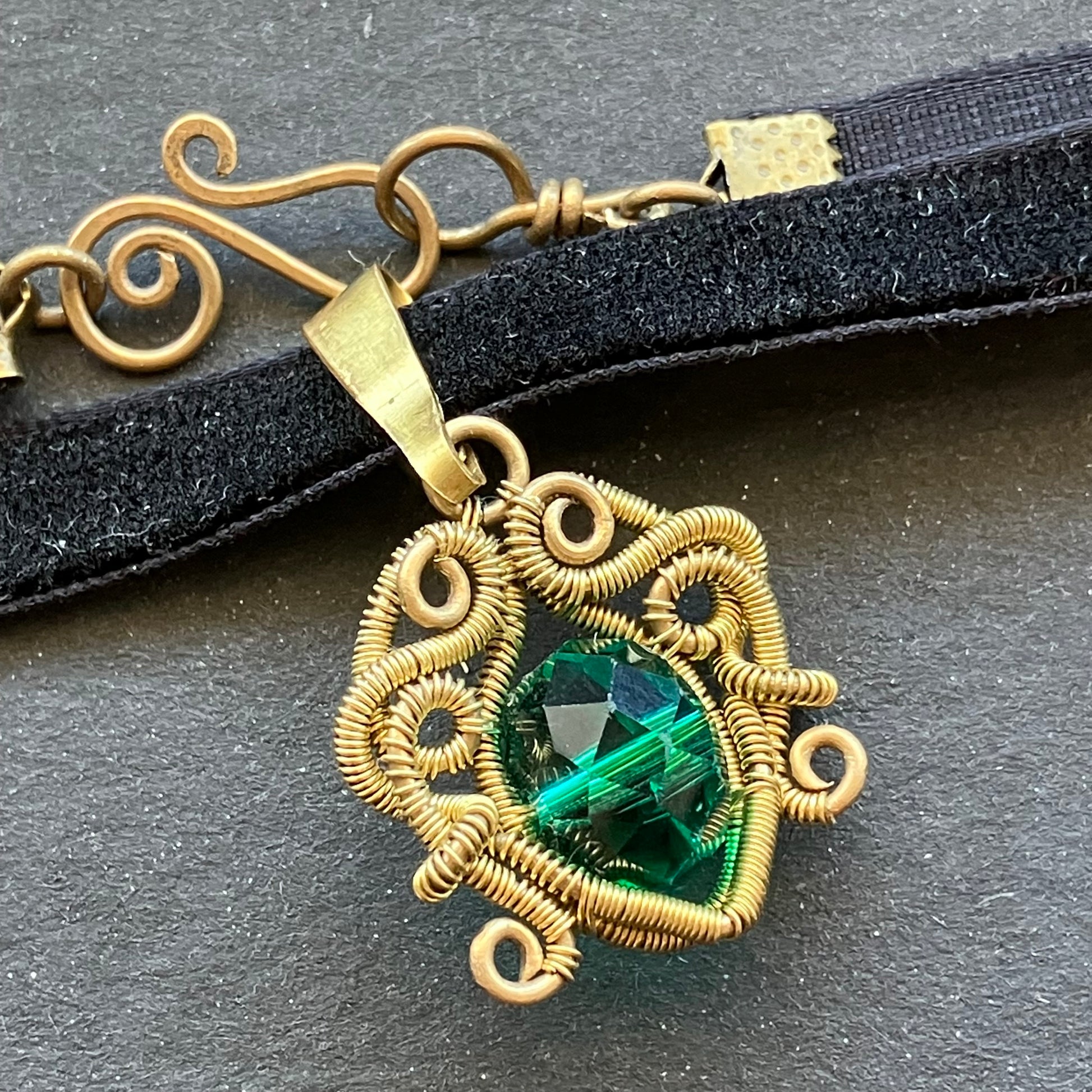 Last of Glass - black and green brass choker