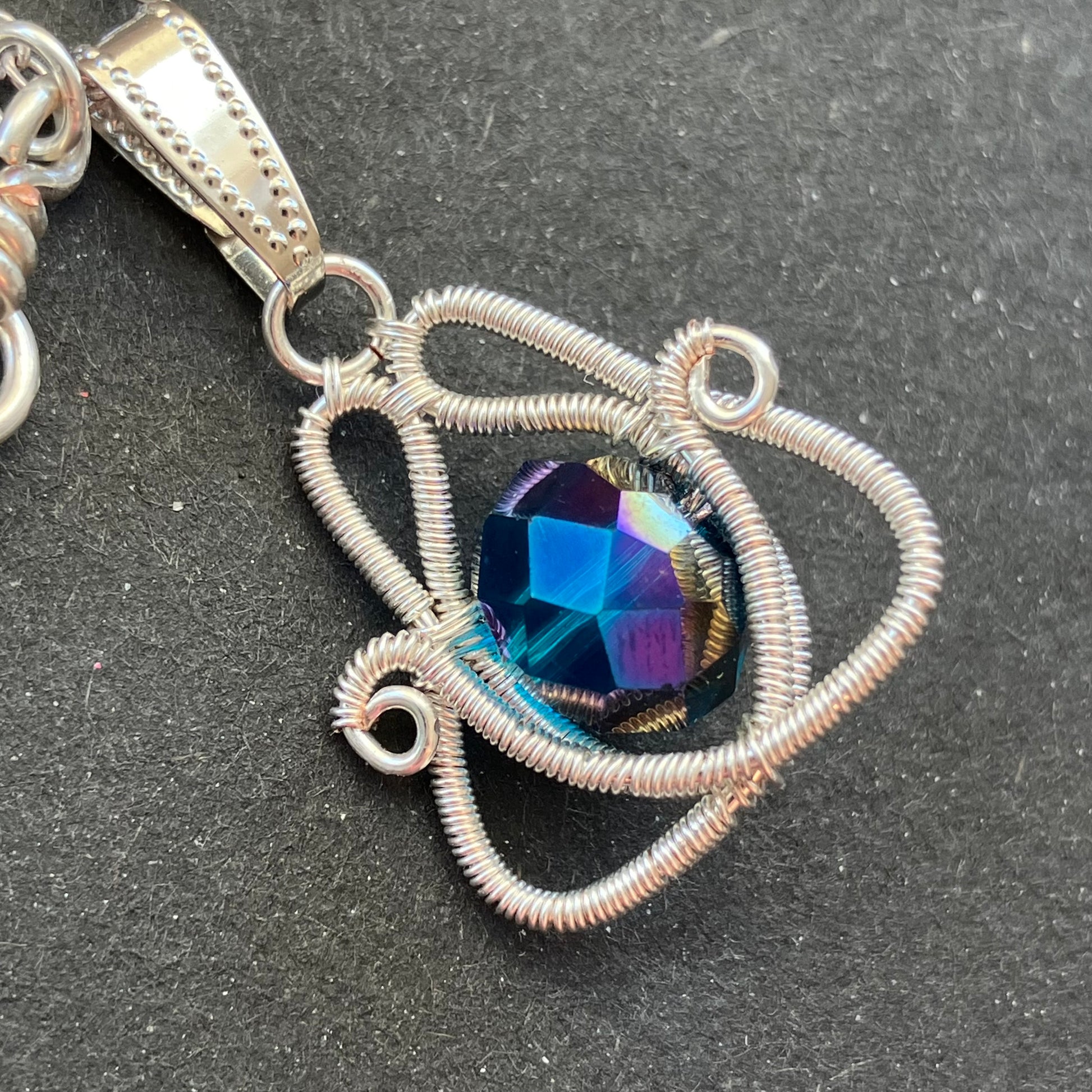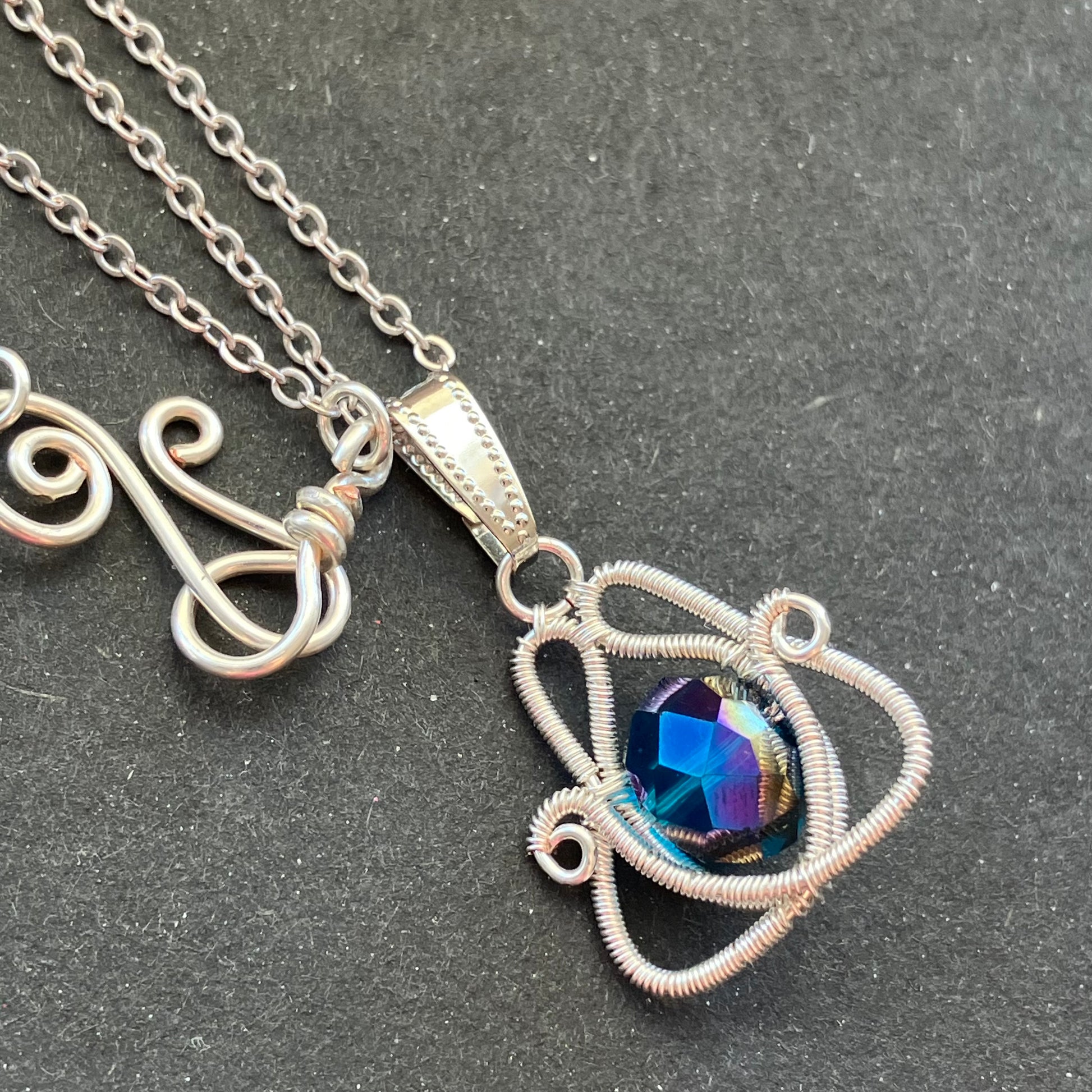 Last of Glass - silverplated iridascent blue necklace