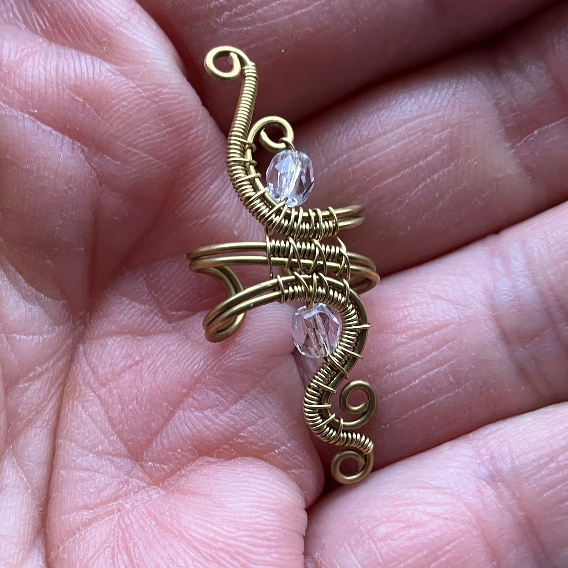 Brass and glass ear cuff.