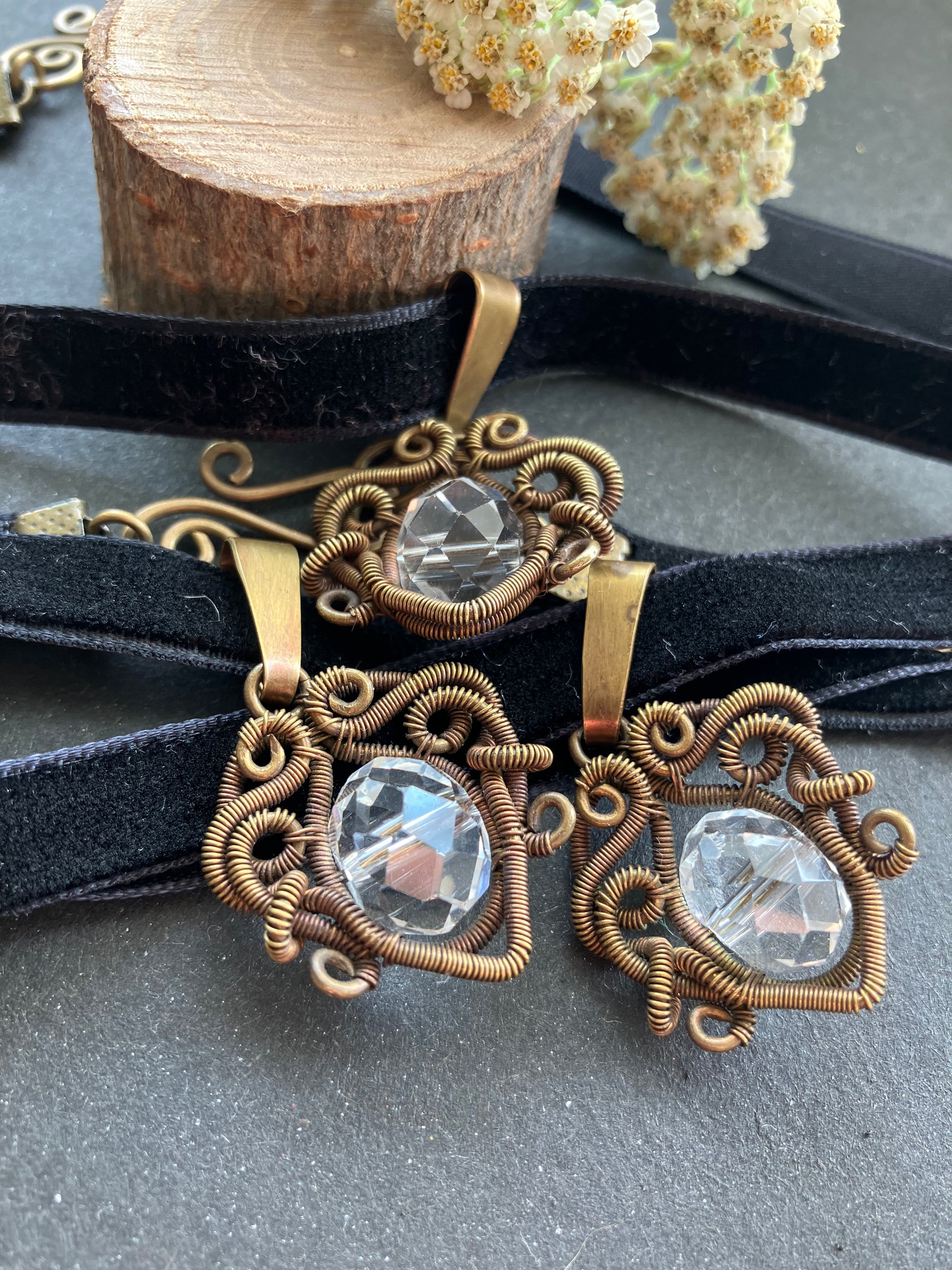 The jewelry comes with a black velvet choker by default, but you can choose from 4 different types of chain too. Please, write in the lenght in the message box, or contact me.