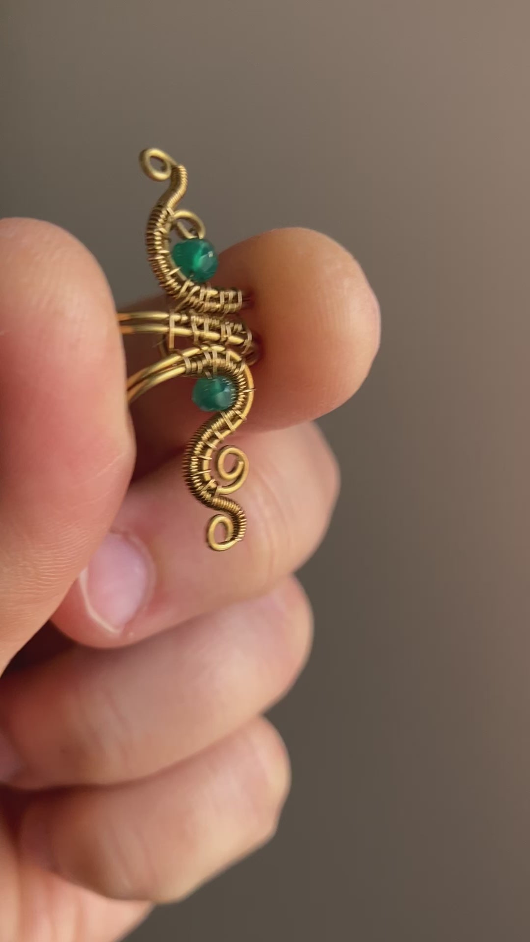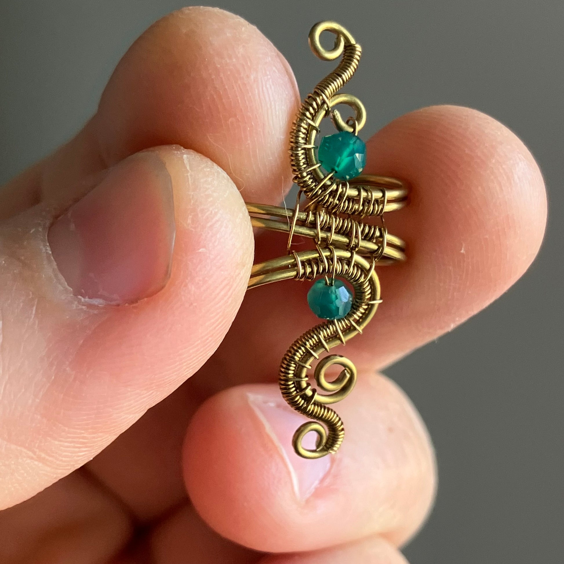 Brass ear cuff with green onyx.