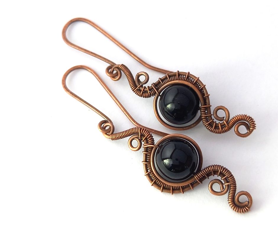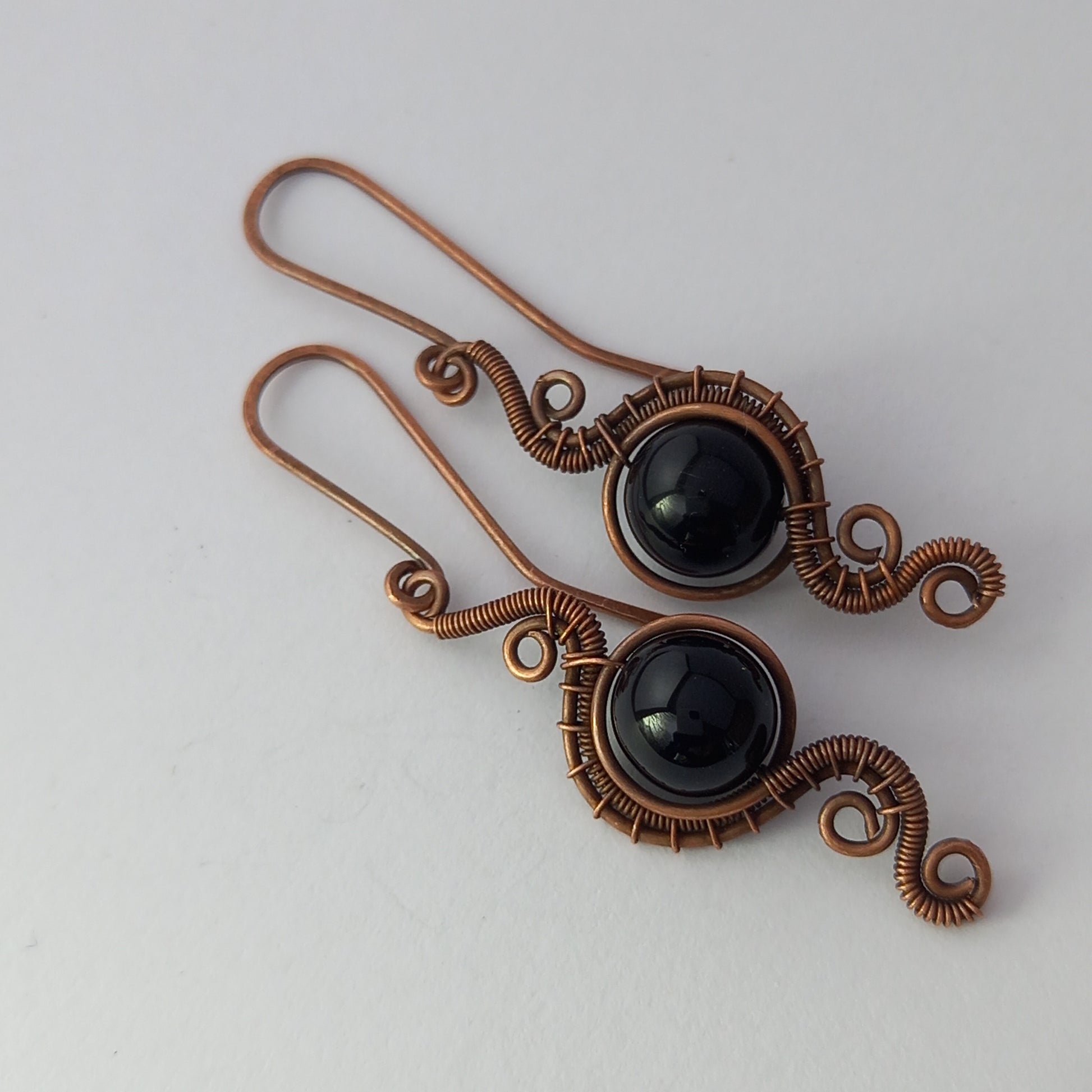 This feminine piece is made from copper wire and beautiful black turmalin beads.