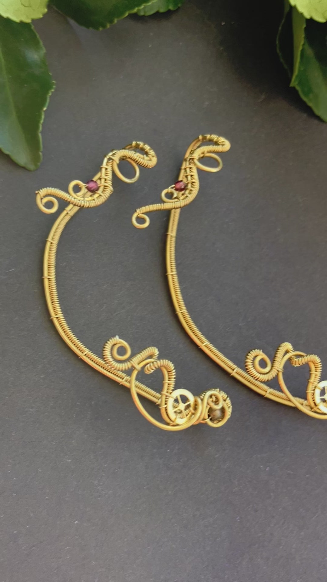 Made with wire wrapping technique using copper wire, adorning it with garnet beads.