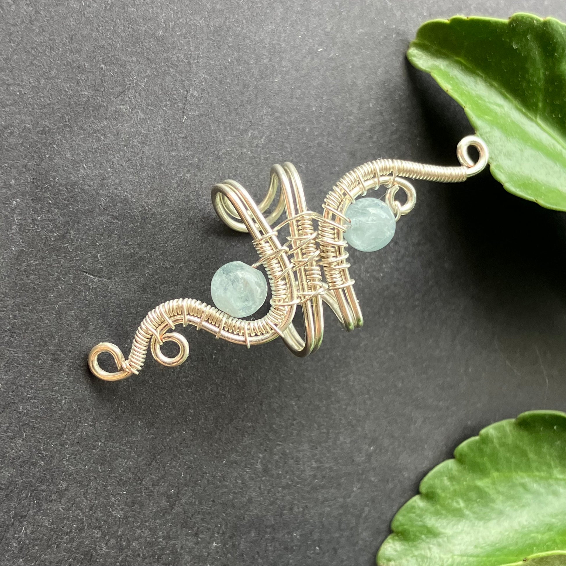 Fantasy ear cuff with aquamarine stones. You do not need pierced ears to wear it.