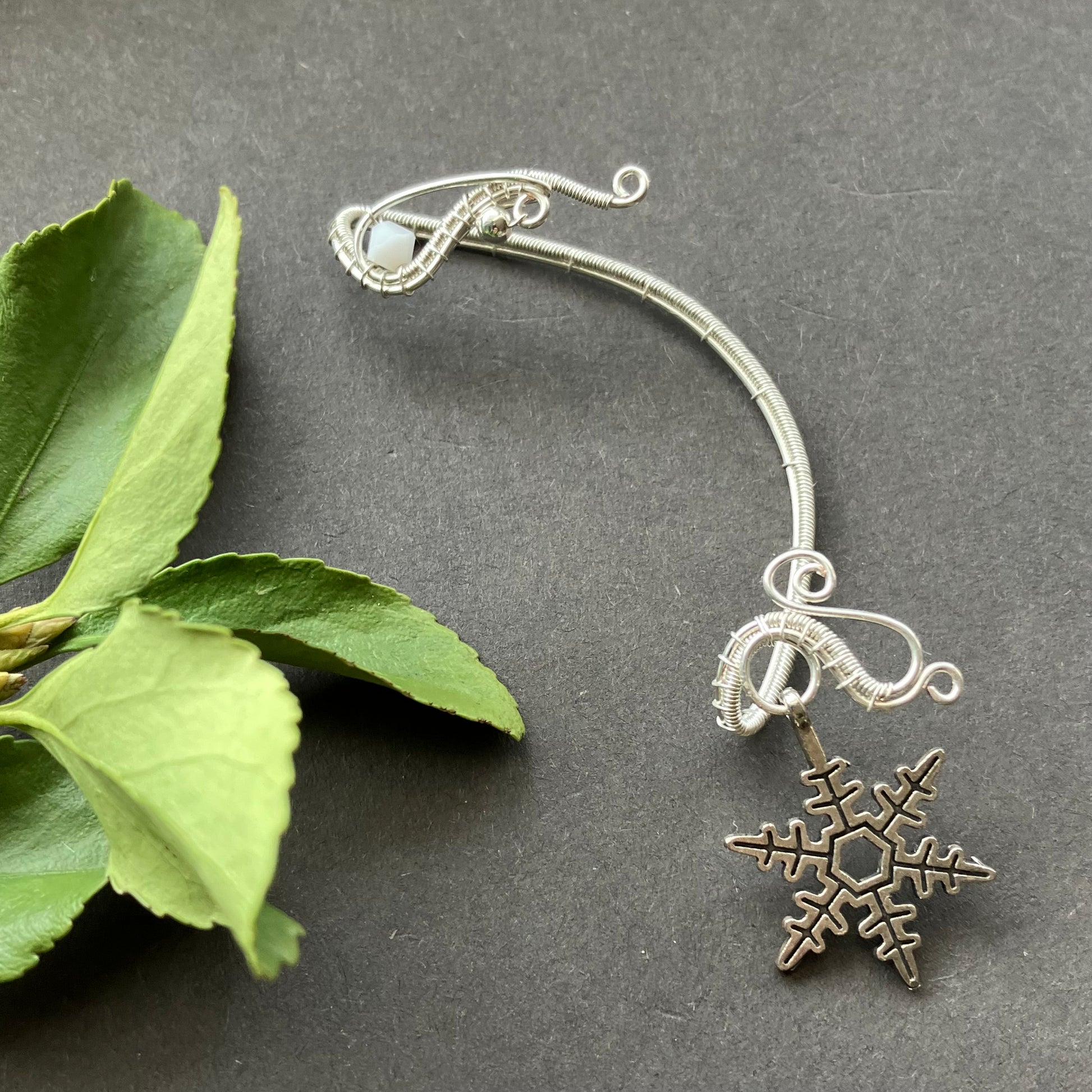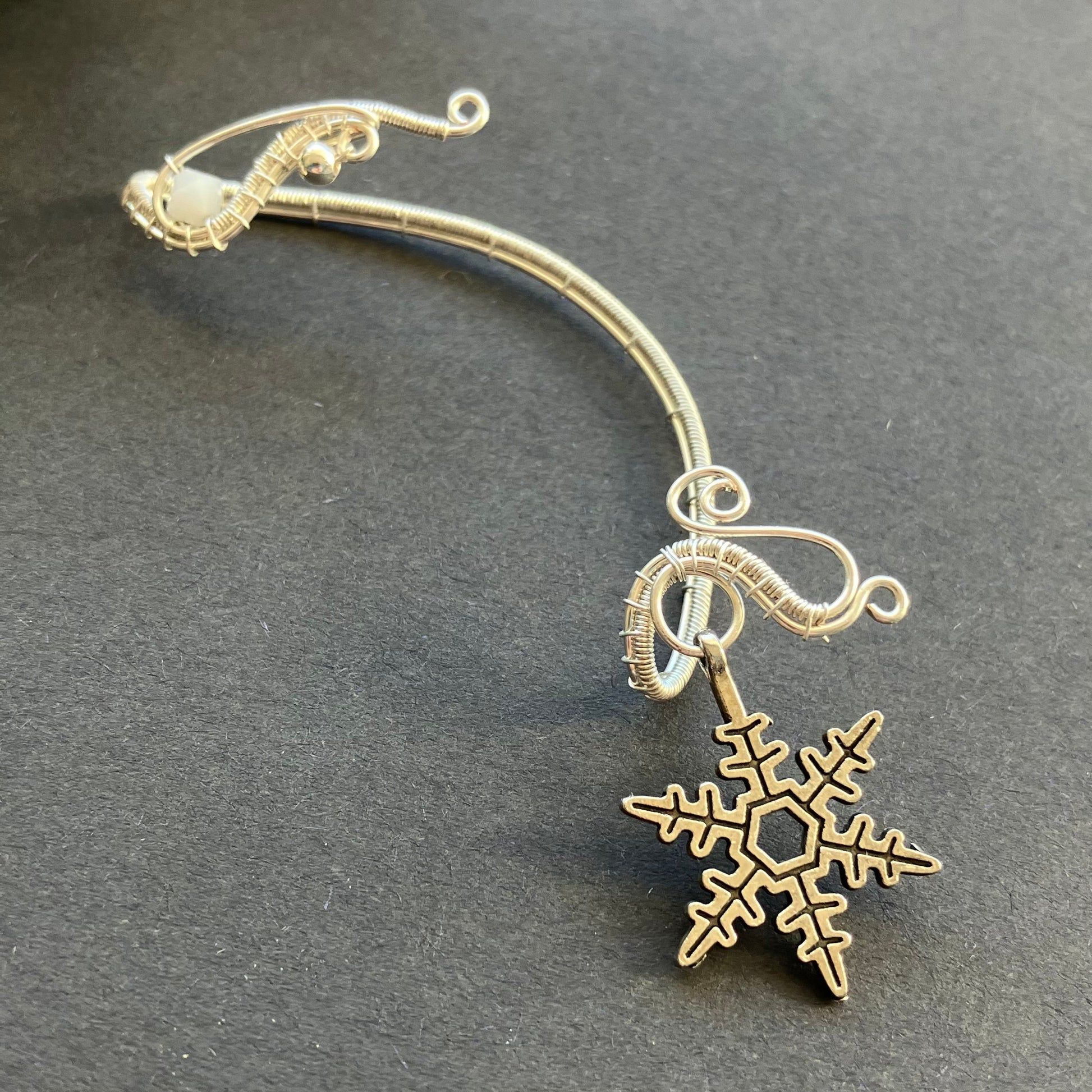 Made with wire wrapping technique with silver plated wire, adorning it with a snowflake charm.